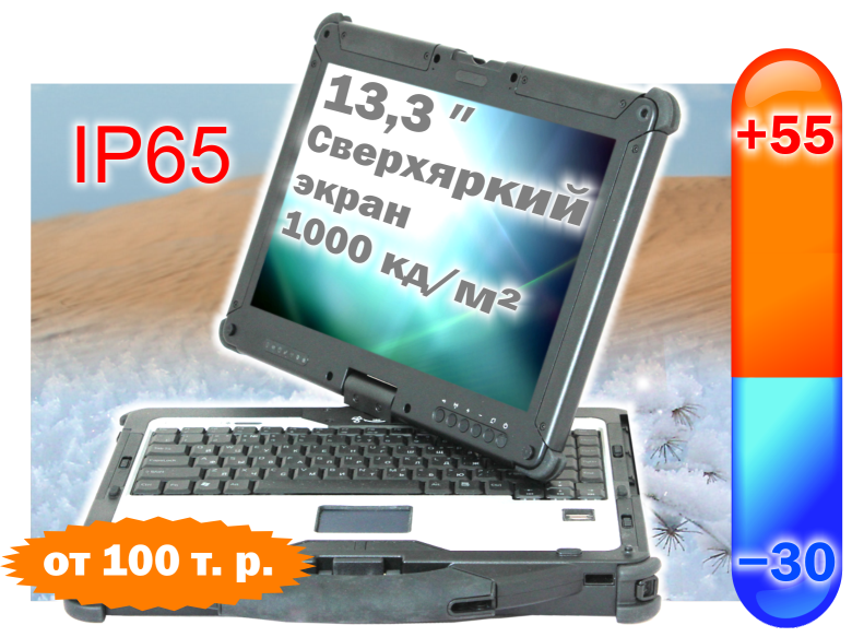 Ультрамобильный защищенный ноутбук: толщина – 28 мм, масса – 2,5 кг. · Защита от пыли и влаги IP65 даже с открытыми заглушками портов · *Рабочая температура: −30 °C ... +55 °C · Высокопрочные байонетные (“военные”) разъемы для LAN, USB, COM. · *Разнообразие внешних интерфейсов: RS-232/422/485, VGA, LAN 1000/100/10, USB 2.0, USB 3.0, слот для карты памяти SD, слот для SIM-карты и др. · Заказные конфигурации согласно специальным требованиям заказчиков |