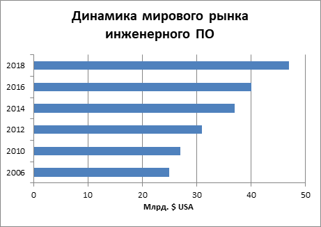 Посмотрим на мировую тенденцию внедрения инженерного программного обеспечения и на активность нашей страны в данном процессе.
