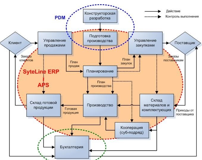 ERP система с модулем APS планирования - обеспечивает информационную поддержку управления сбытом, производством, закупками, запасами.