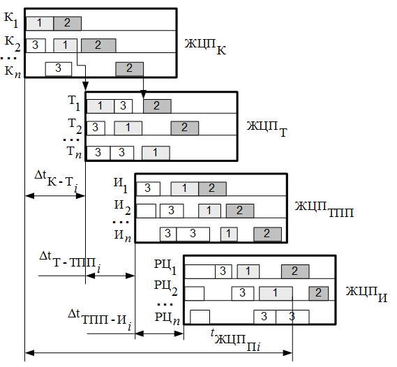 Рис.6. Взаимосвязь расписаний работы различных этапов ЖЦПП