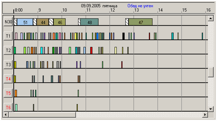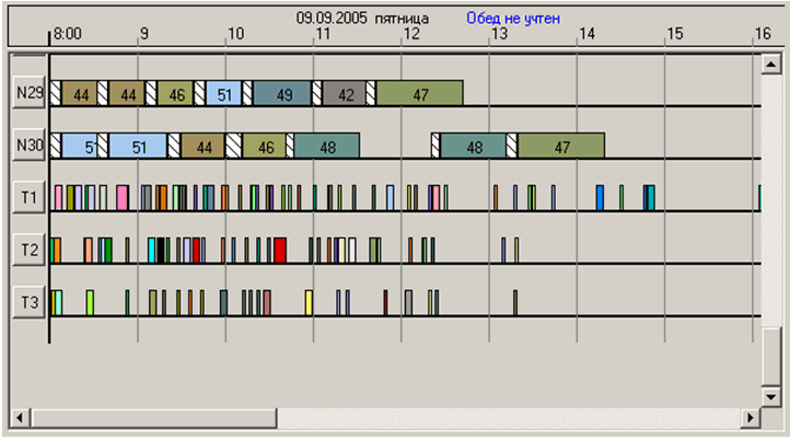 . Сокращение этих величин возможно только в одном случае – если модель планирования будет включать в себя как все этапы ЖЦПП, так и все исполнительные устройства, отвечающие за выполнение тех или иных работ ЖЦПП – множества инженеров-конструкторов, технологов, специалистов отделов АСТПП и множества рабочих центров по всей технологической цепочке (все технологическое оборудование предприятия). При этом диаграмма Гантта этапа ЖЦПИ будет представлена всеми производственными подразделениями предприятия (цехами) с последующей дифференциацией на расписания отдельных подразделений.