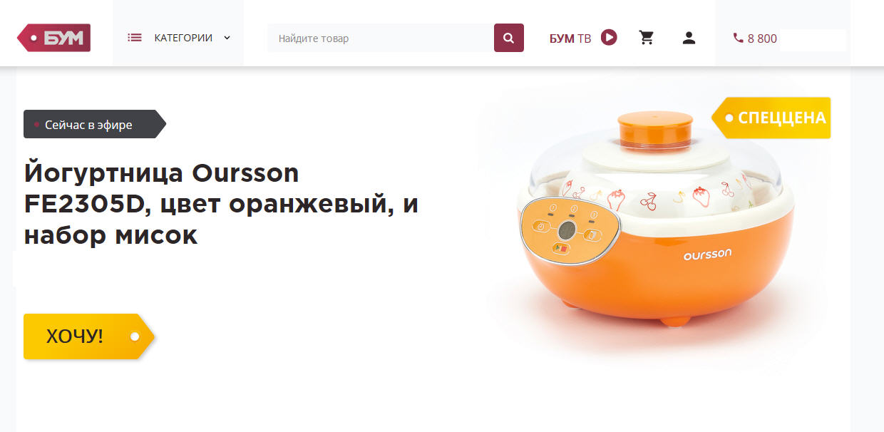 «БУМ» - это площадка для продажи уникальных высококачественных товаров со всего мира, среди которых премиальная корейская косметика, техника для кухни, стильные аксессуары и многое другое. «БУМ» перенимает богатый опыт компании GS Home Shopping Inc., которая объединила телемагазин, электронную и мобильную коммерцию, торговлю через каталоги. Помимо Южной Кореи GS Home Shopping Inc. представлена в Китае, Турции, Индии, Таиланде, Малайзии, Индонезии и Вьетнаме.