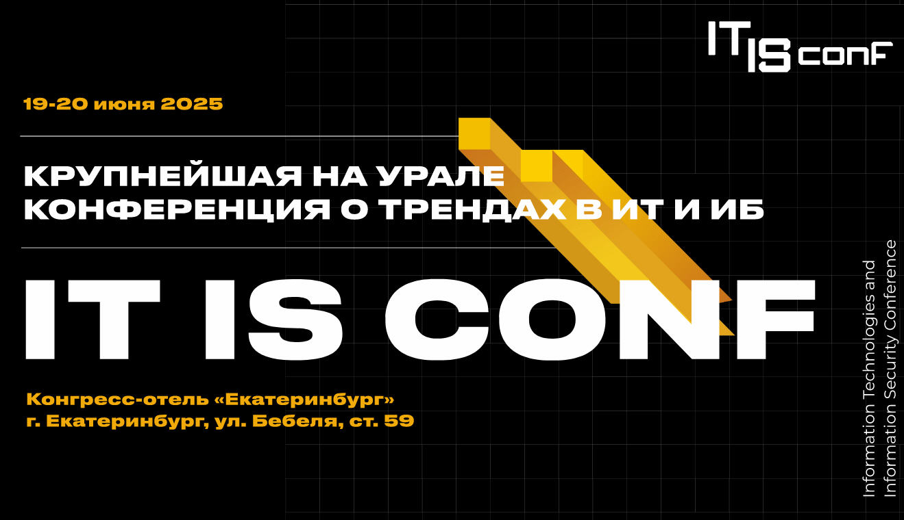 19–20 июня 2025 года в Екатеринбурге при поддержке Министерства цифрового развития и связи Свердловской области состоится шестая ежегодная конференция IT IS conf, объединяющая более 600 экспертов в сфере информационных технологий и кибербезопасности со всей страны, руководителей компаний, глав профильных министерств и представителей бизнес-структур. Мероприятие традиционно станет платформой для обмена опытом, обсуждения актуальных трендов и представления инновационных решений в сфере ИТ и ИБ.
